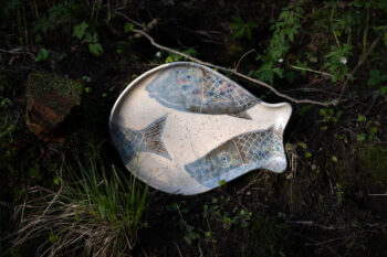 Pannkoogialus “Maasikad ja mustikad” ümar (valge täpisavi)