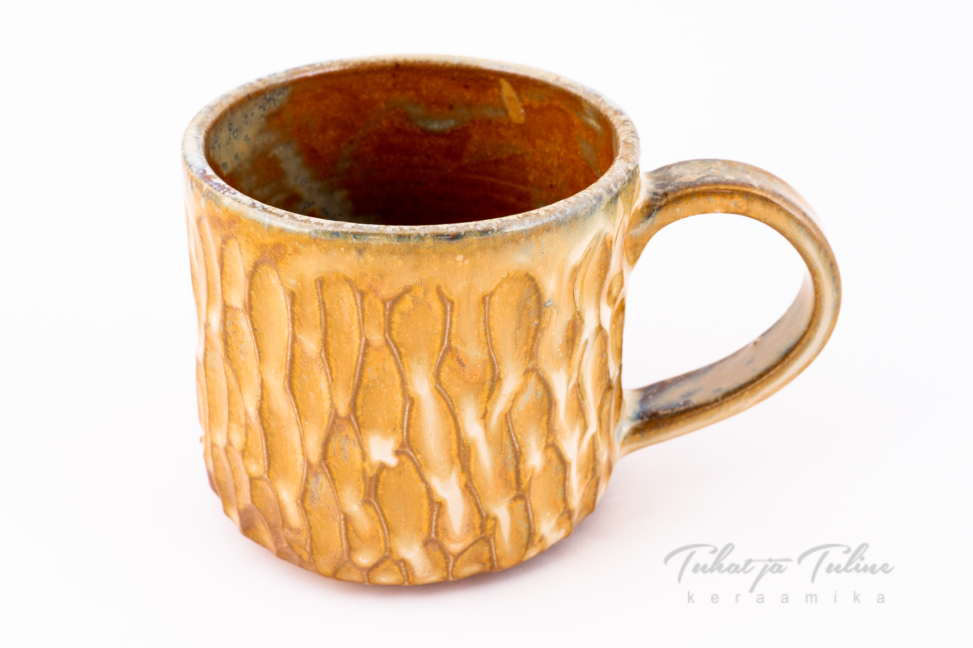 Tuhalennus ning tulekumas valminud unikaalne keraamiline kruus, põletatud Kaljurahnu naborigama ahjus.