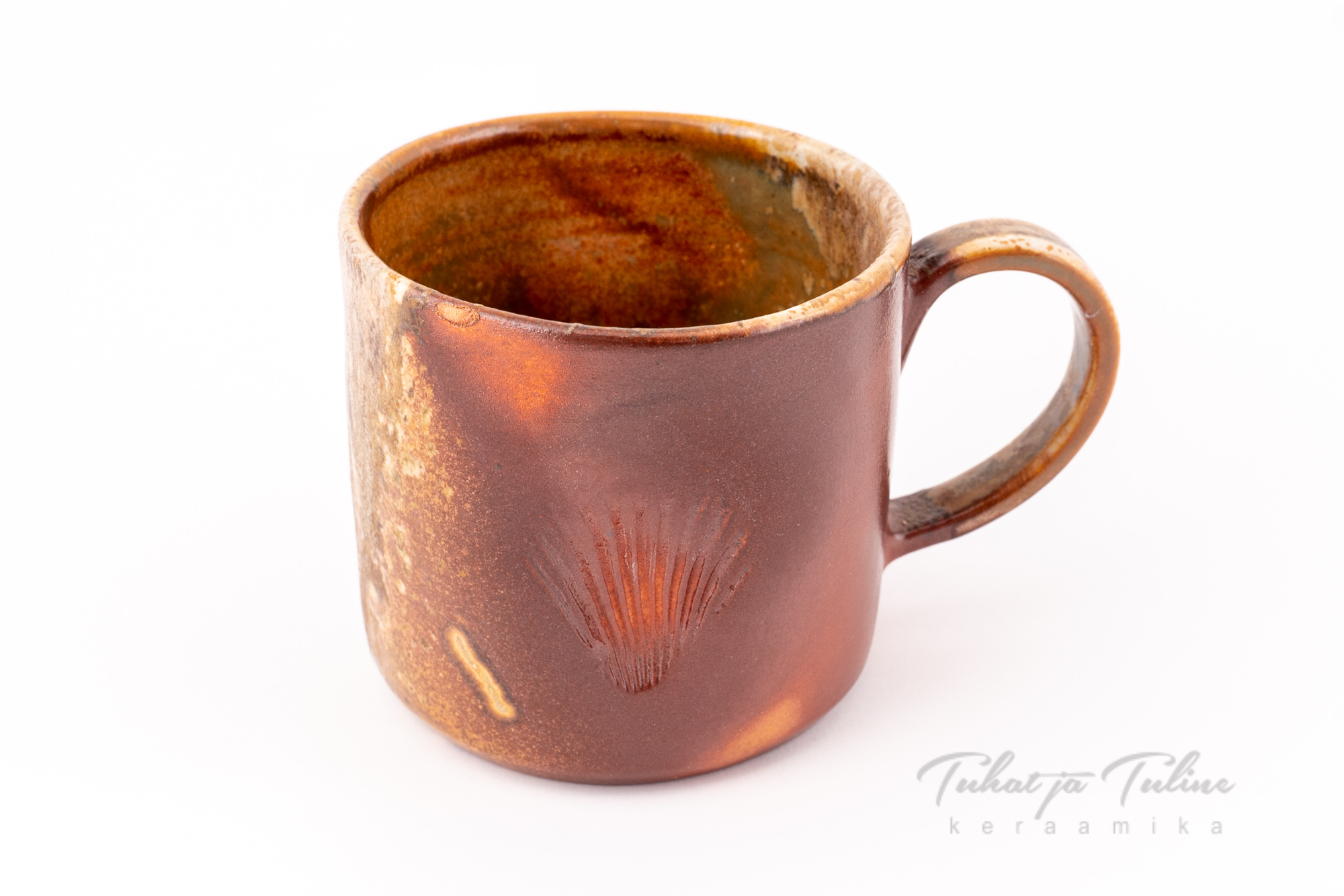 Tuhalennus ning tulekumas valminud unikaalne keraamiline kruus, põletatud Kaljurahnu naborigama ahjus.