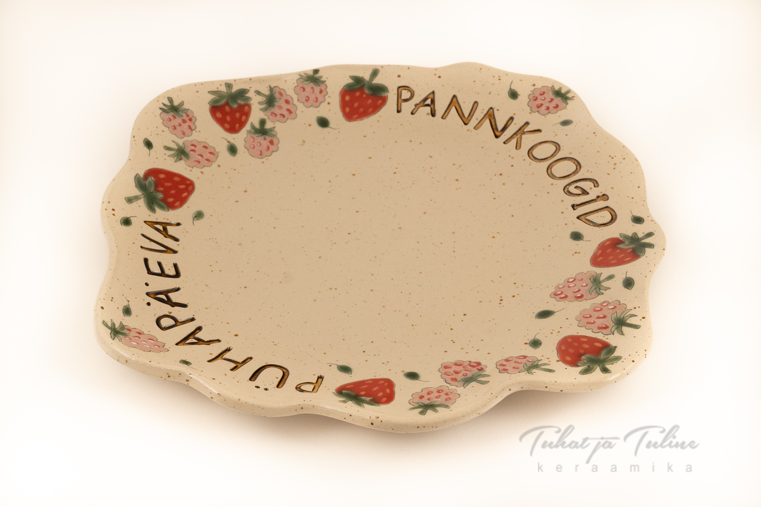 Pannkoogialus “Maasikad ja vaarikad” kandiline (valge täpisavi)